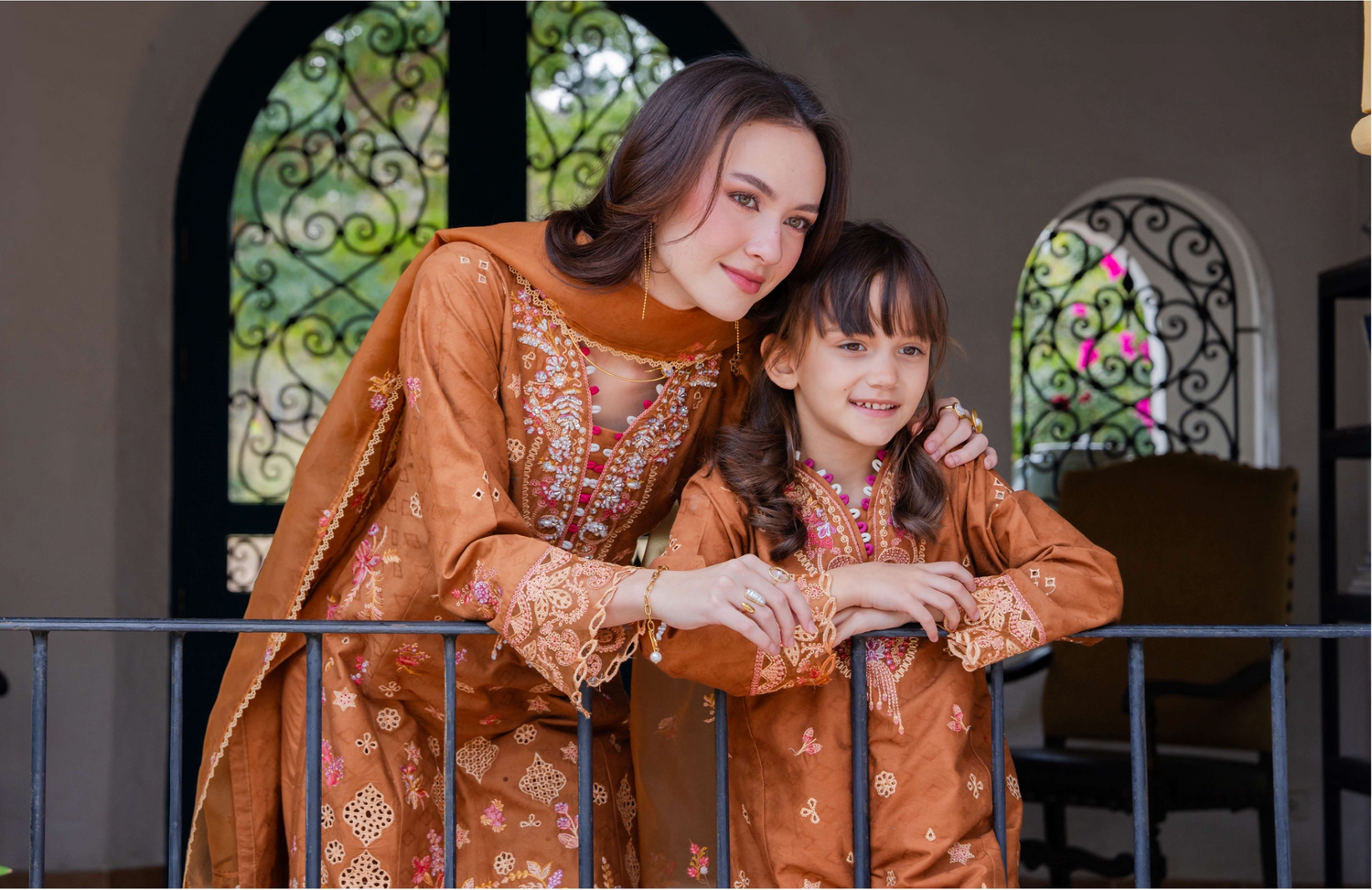 Orange Brown 'Aurea' Jacquard Girls Suit