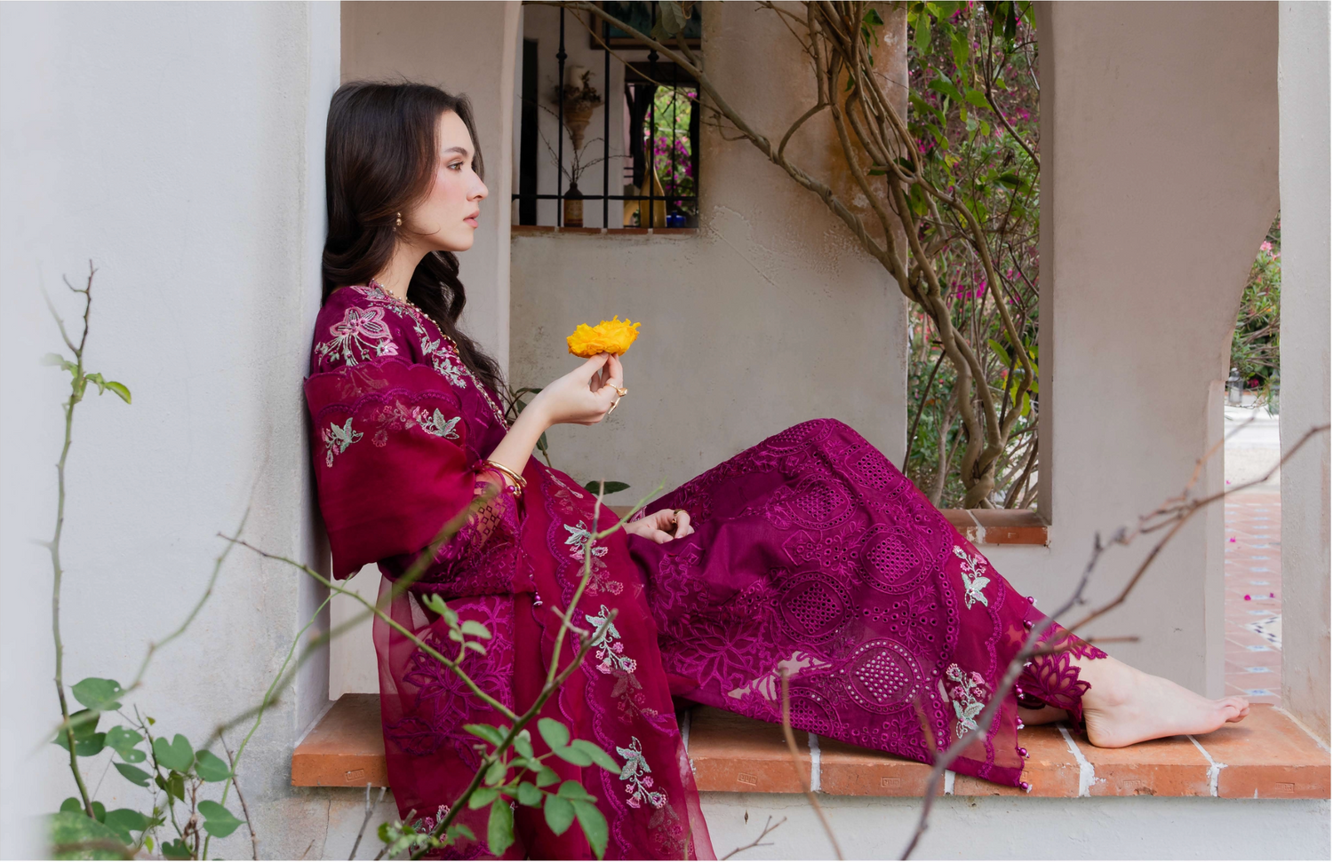 Burgundy 'Aurea' Jacquard Girls Suit