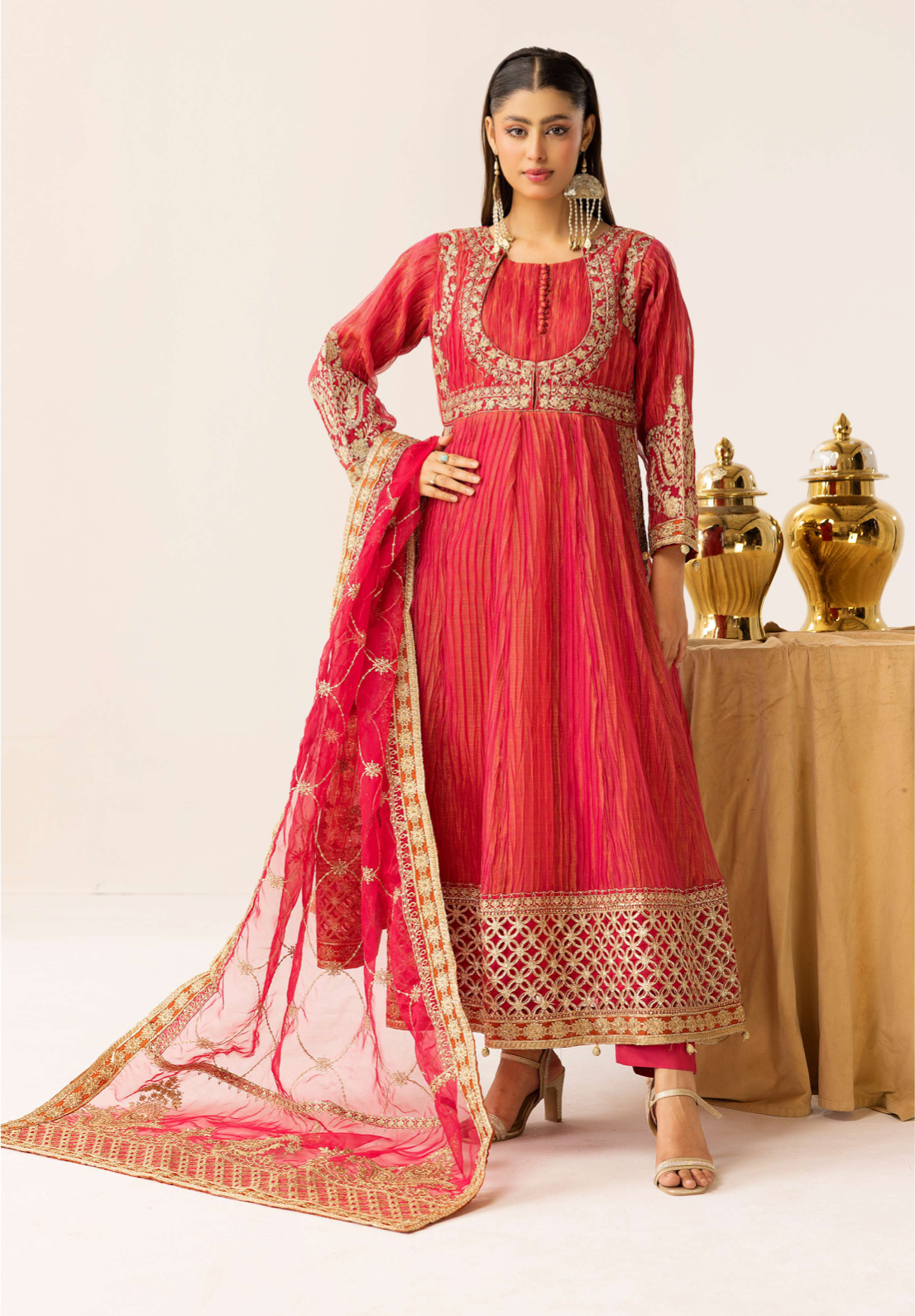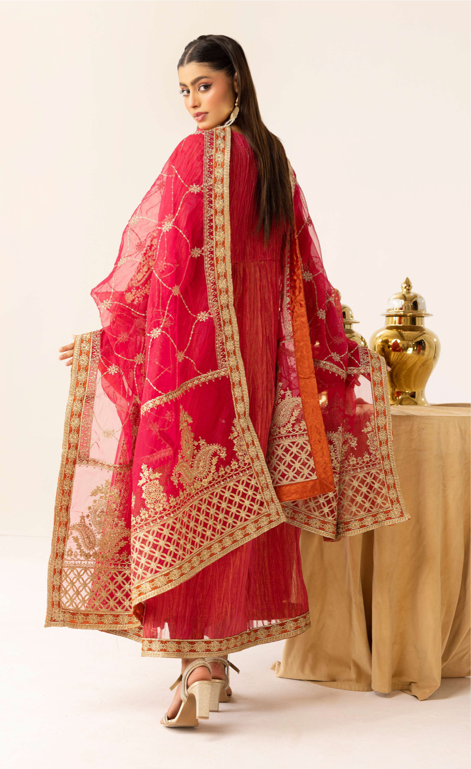 Premium Crushed Tissue Suit with Heavy Embroidery and Sequin Work. Comes with Straight Trousers and a Heavy Embroidered and Sequin Embellished Soft Organza Dupatta